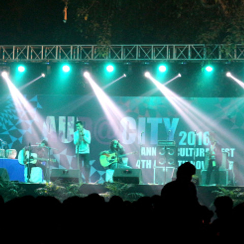 It began in the psychology class, when I was absolutely bored. And lucky (me) how it reached there. On all the banners and certificates and posters and whatnot. I felt so proud of myself. I designed on corel and photoshop after the physical blueprint was done. That was hectic but fun. You can see the design in that stage banner in the picture above. Aud@city is the main fest of AUD that happens once every year.